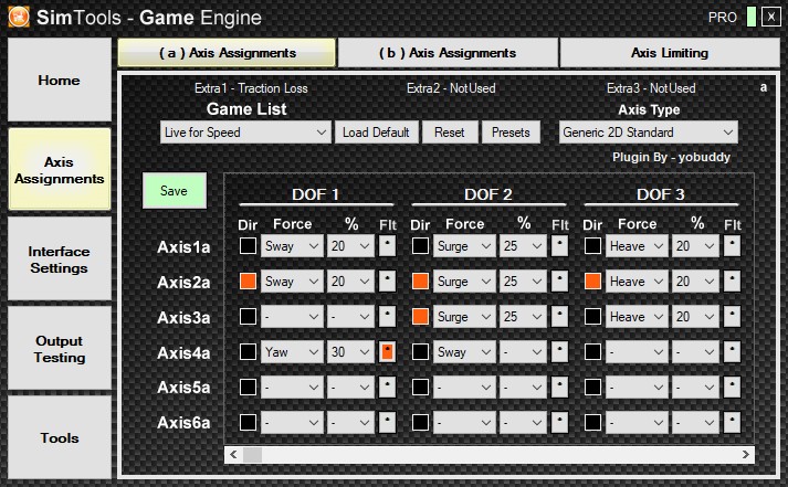 SimTools provides the missing link between the game and the motion simulator. It extracts the game values like the force of speed, direction of movement, shifting gear, RPM of the engine, force of acceleration and a whole lot more. Then, all of these values are mixed into a standardized data set which can be used to control the motors of your motion simulator.